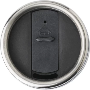 Kubek termiczny 450 ml, podwójne ścianki, wieczko z zamknięciem, antypoślizgowy spód, klasa termiczna: 1. Kubek przeznaczony do mycia ręcznego.